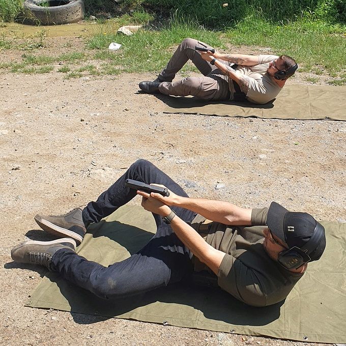 Еднодневен курс по тактическа стрелба с късо оръжие за напреднали. Целта на курса е да повиши практическите умения на курсистите при боравене с късо оръжие в ситуация на дефанзивна стрелба в затворено помещение, на открито и около автомобил. Тренировката може да се проведе както индивидуално, така и в група.*